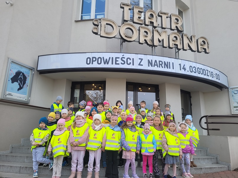Wspólny wyjazd dzieci z grupy Delfinki oraz Zajączki do Teatru Dzieci Zagłębia w Będzinie