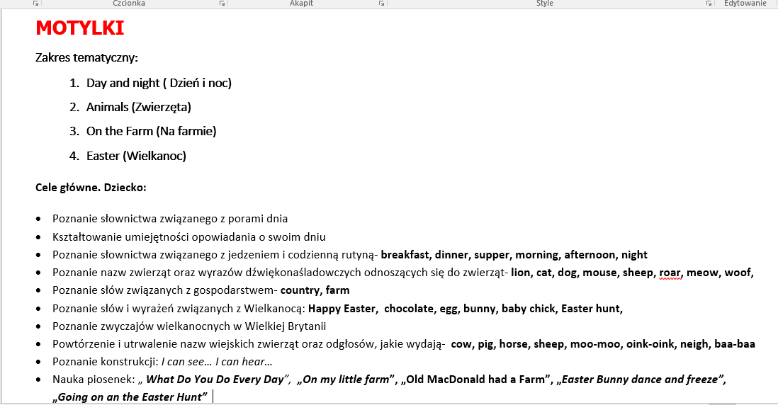 Zamierzenia dydaktyczne listopad 2025 r.