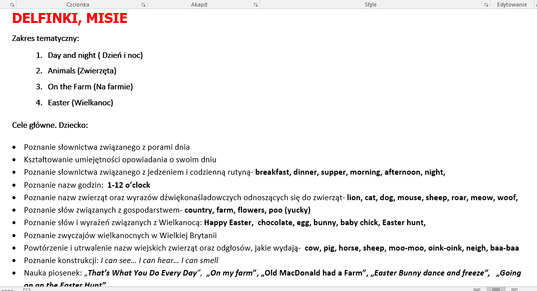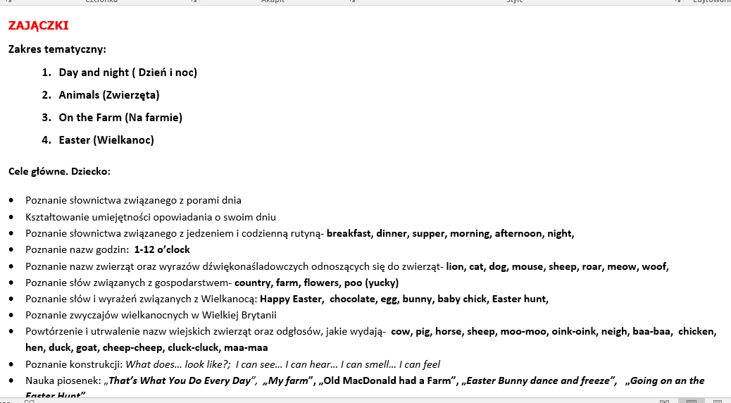 Zamierzenia dydaktyczne październik 2025 r.